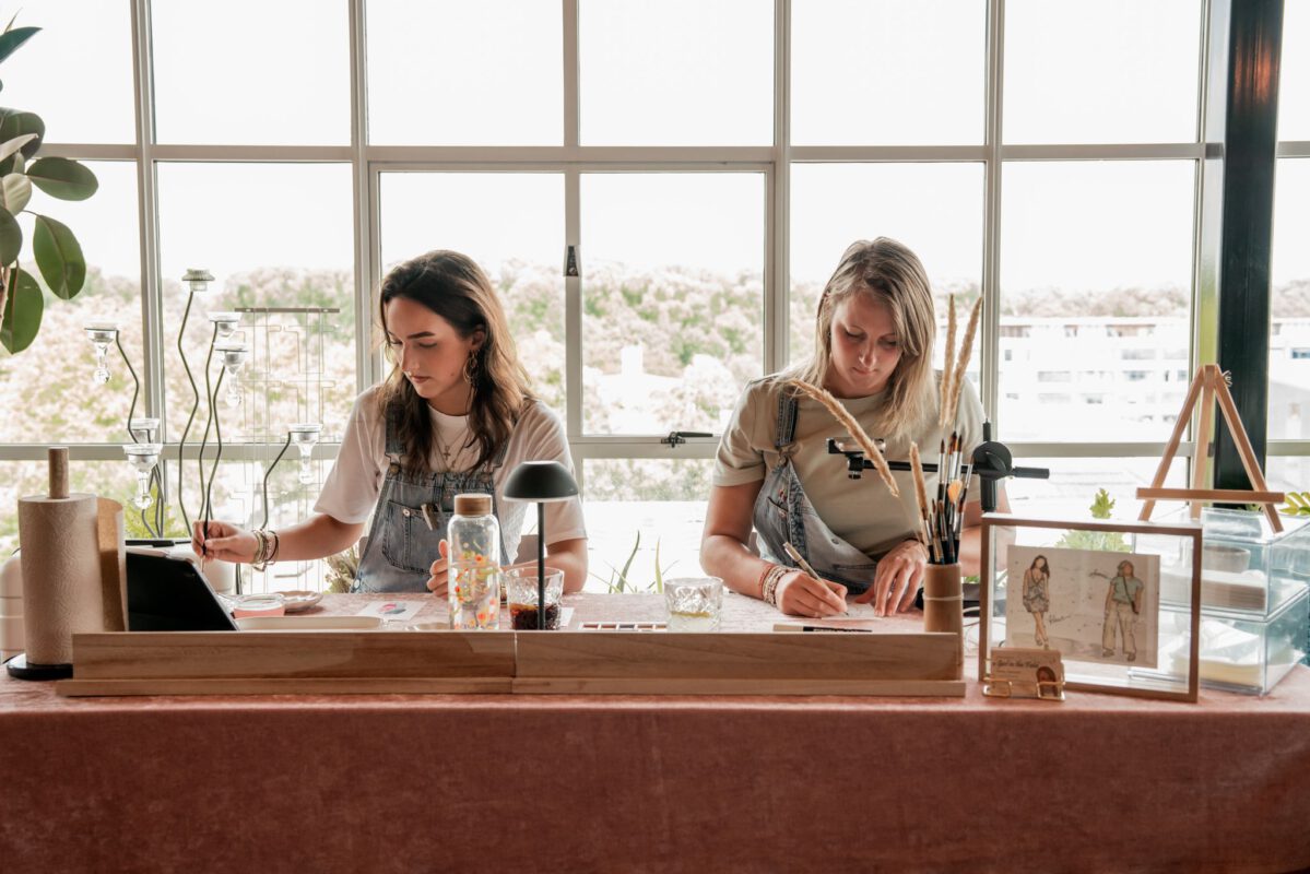 Onze ontwerpen vind je terug op ansichtkaarten voor elke gelegenheid: van verjaardagen en bruiloften tot rouwkaarten en zomaar een lief berichtje. Heb je een eigen idee? We maken met plezier een illustratie op maat. Daarnaast delen we onze liefde voor aquarel tijdens workshops, waarin je ontdekt hoeveel je zelf kunt creëren met penseel en water. En wil je iets bijzonders op je feest of evenement? Dan komen we graag live schilderen, zodat jouw gasten naar huis gaan met een uniek, handgemaakt portret.